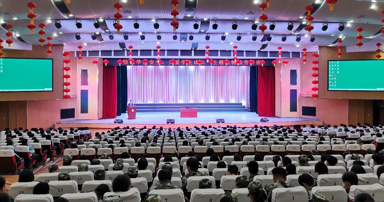 10月29日下午,我院学生法治教育讲座在明德大礼堂顺利开展,同时咸阳市公安局渭城分局、文汇路派出所民警也进入校园进行了“预防电信网络诈骗”相关宣传。咸阳市公安局渭城分局王甲睿及文汇路派出所张智刚两位警官在明德大礼堂应邀为我院师生做了“情系学校安全,关爱学生成长”的主题法治教育讲座,会议由保卫处副处长胡建辉主持。