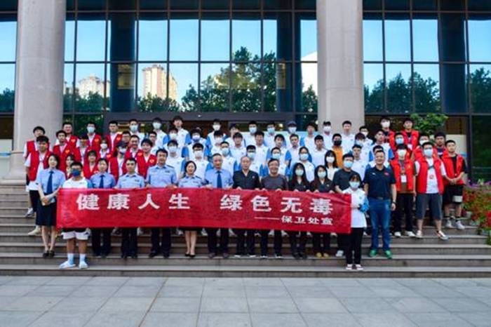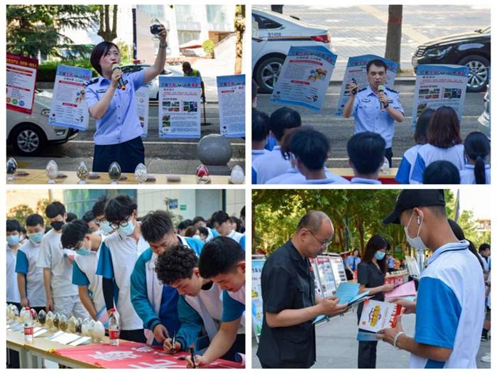为进一步加强校园禁毒宣传,增强学生对毒品危害的认识,提高学生自觉抵制毒品的意识,为在校学生营造良好的成长环境。6月23日下午,在“国际禁毒日”来临之际,我校保卫处联合咸阳市公安局渭城分局、渭城区检察院、渭城区人民法院、文汇路派出所、文汇路街道办等各单位,在我校精艺楼前开展了“健康人生绿色无毒”禁毒宣传进校园活动。