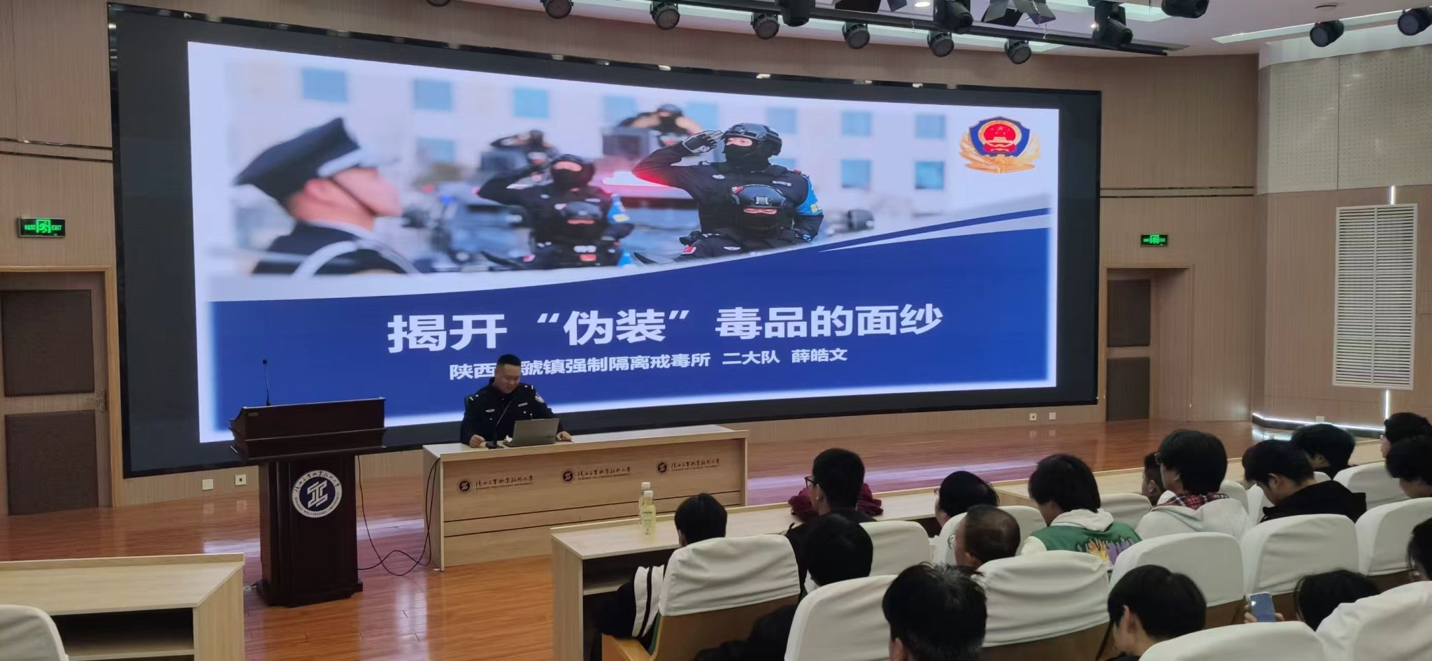 随后,来自省虢镇强制隔离戒毒所的薛警官通过展示仿真毒品模型、播放警示教育片等形式,向师生们详细介绍了毒品的种类、特征及其对个人、家庭和社会的严重危害。宣讲强调了青少年预防毒品侵害的重要性,教育引导同学们树立正确的人生观、价值观,珍爱生命,远离毒品。