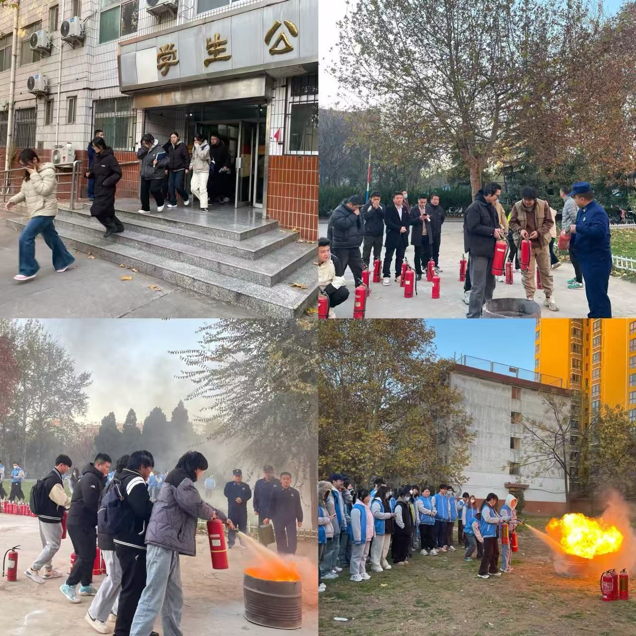 为落实省委厅关于2025年度消防安全月有关要求,切实增强广大师生的消防安全意识,提升应对突发火灾事件的应急处置能力和自救互救技能,11月18日,我校成功组织了火灾应急疏散及灭火实操演练。本次演练由学校保卫处牵头,联合学生工作部、土木学院、材料学院、化纺学院、国有资产处等多部门共同组织实施,500余师生和第三方商户参与其中,渭城区文汇路消防所全程指导演练。