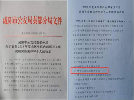 4月26日上午,咸阳市公安局秦都分局召开关于表彰2023年度全区单位内部保卫工作表彰大会暨安排部署2024年度安全保卫工作,秦都区金融单位、企事业单位、驻区高校等一百余名代表参会,我校荣获“2023年度全区单位内部保卫工作先进集体”,并在表彰大会上进行发言交流。咸阳市公安局经文保支队马建平支队长参加会议,并分析全球新形势下国内安全稳定局势的严峻性、艰巨性,并对相关工作做出安排部署,对2024年度单位内保工作提出更高的要求。